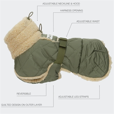 Paikka Quilted Sherpa Fleece Vinter Hundejakke Olive