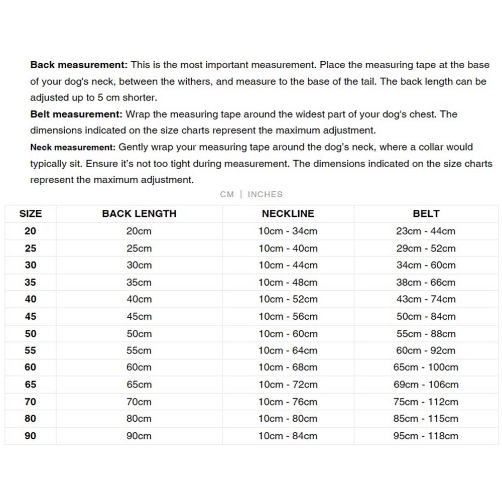 For at finde den rigtig størrelse skal du måle din hund fra nakke-til-halerod, rundt om halsen og brystkassen. Se evt. vores video.
