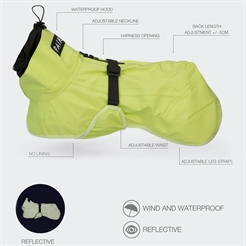 For at få mest muligt ud af dens funktionalitet, skal du blot sørge for at justere jakken, så den sidder godt til på hunden. Så vil både vind og vand f¨å svært ved at finde vej ind til din hund.