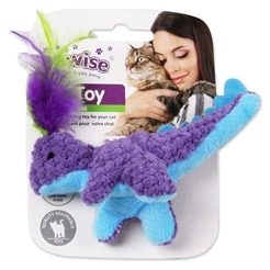 Denne søde dinosaur kattebamse vil uden tvivl skabe stor glæde hos din kat. Bamsen har fjer i hovedet, som rigtig kan provokere katten.