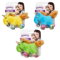 Denne søde enhjørning kattebamse vil uden tvivl skabe stor glæde hos din kat. Bamsen har knitrekrop og en hale og man der stritter, som rigtig kan provokere katten.