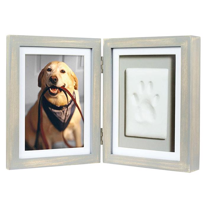 En smuk grå billederamme til dit hjem. Sæt et billede af dit kæledyr i rammen, sammen med en afstøbning af poten.