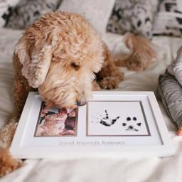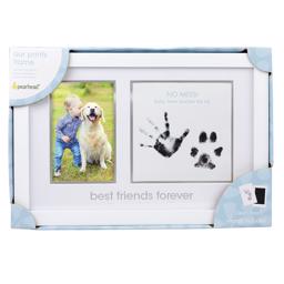 Hvad er mere sødt, end at have en ramme hængende på væggen derhjemme med et billede af dit barn og din bedste ven, sammen med de fineste aftryk af den lille hånd og pote. Her får du en billederamme der er beregnet til at skulle hænge, sammen med et kit, så du kan lave et fint aftryk af dit barns lille hånd og din hunds pote.