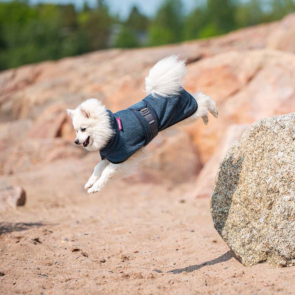 BathPomppa er et uundværligt redskab for aktive hunde – uanset om du er hjemme, i bilen, under træning eller på vej til stranden! Tørredragten hjælper med at fremskynde tørreprocessen og holder din hund varm og komfortabel efter våde aktiviteter.