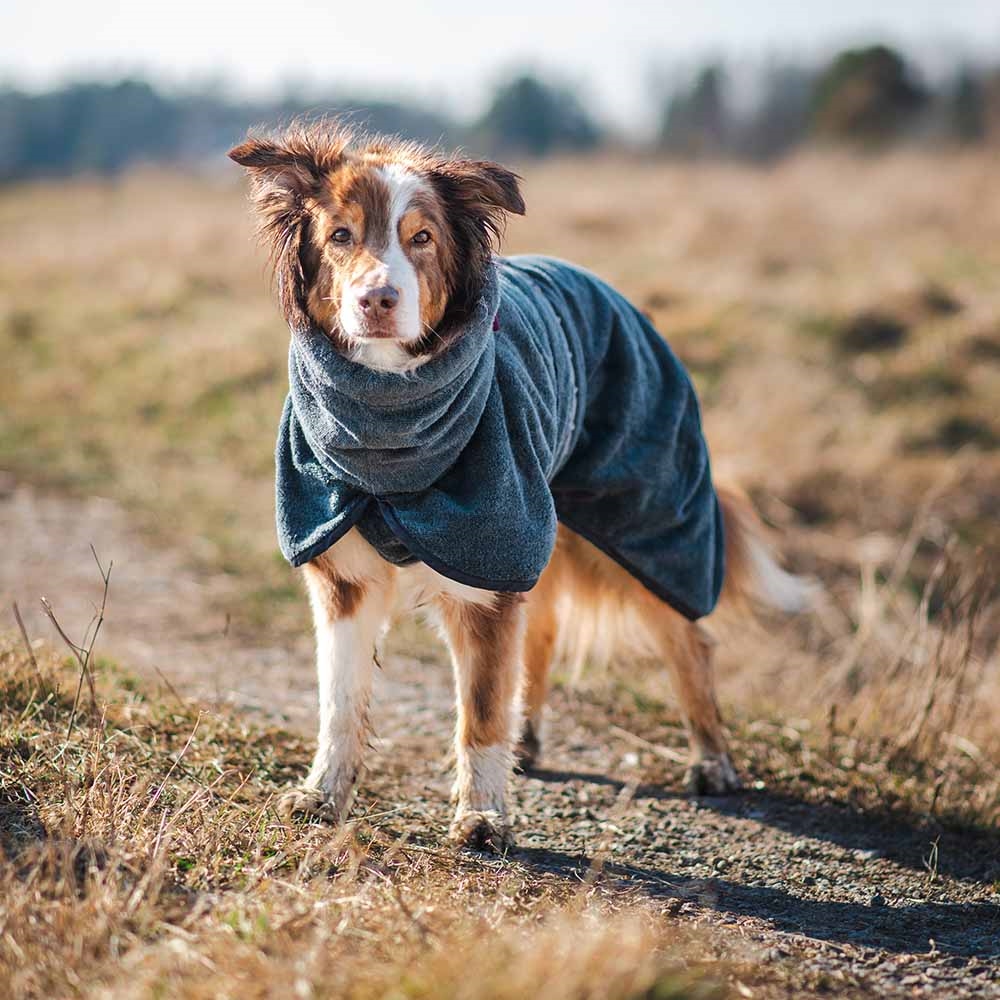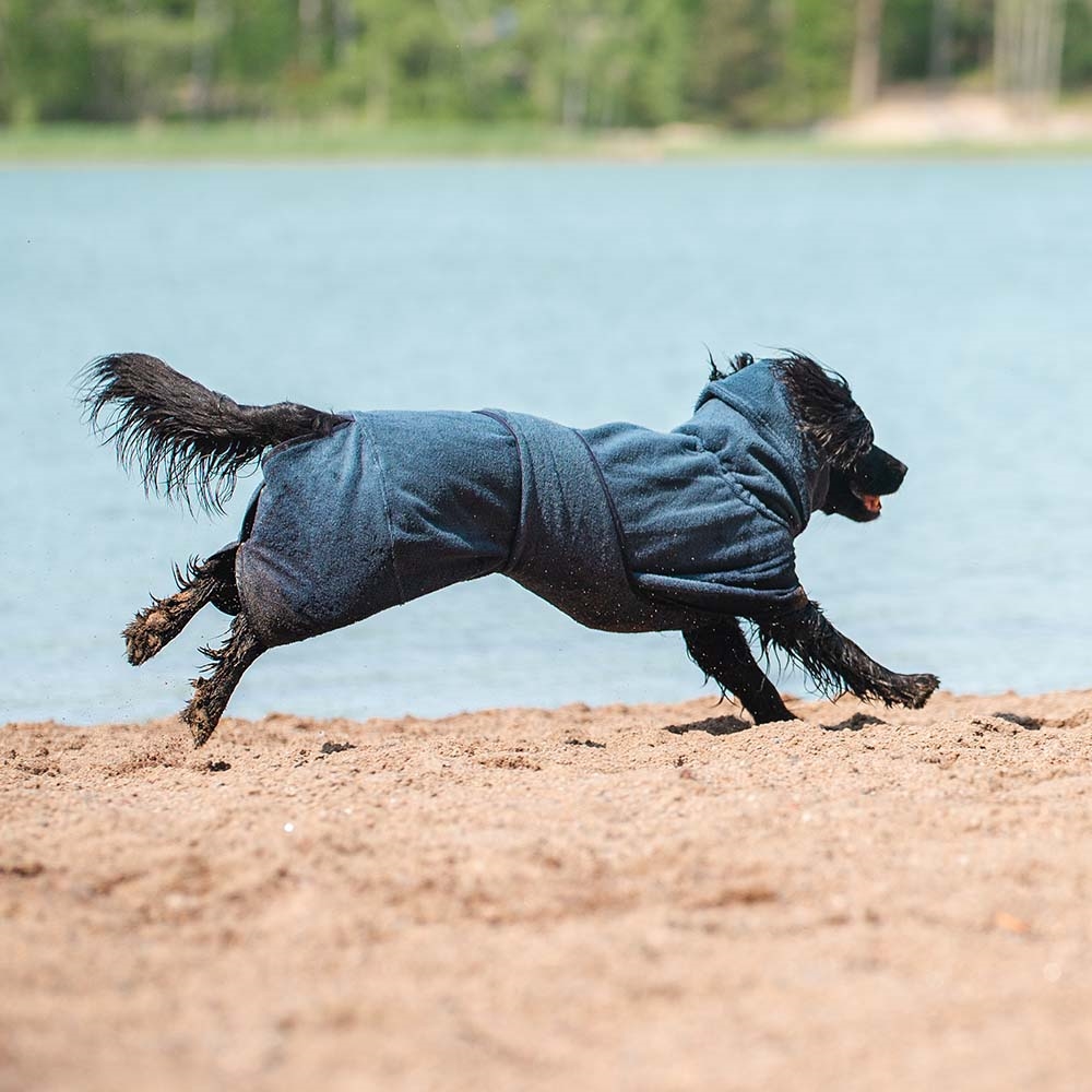 Slidstærkt tørredækken til hunden. Til brug efter svømning, bad eller regnfulde gåture.