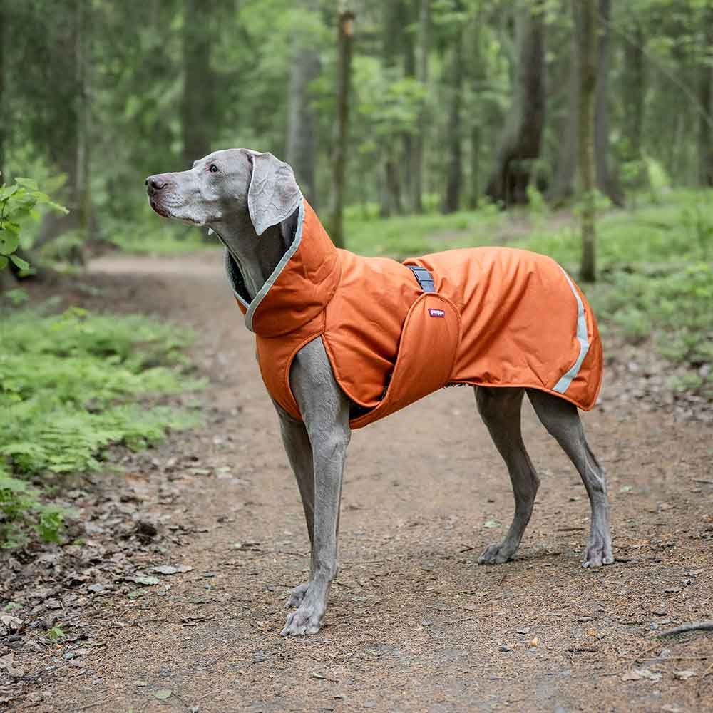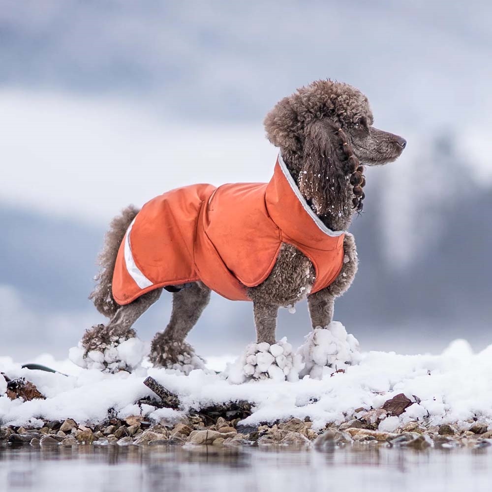 ToppaPomppa er en tyk og generøs vinterfrakke til frostvejr. Det slidstærke yderstof, teddyforet og isoleringen fungerer bedst i vintervejr. ToppaPomppa er den perfekte vinterfrakke til kuldefølsomme hunde, hvorimod vi til hunde med tyk pels anbefaler at bruge den til roligere gåture eller til hvilepauser i hundesport, når det er afgørende at holde musklerne varme. SÅ varm er den nemlig!