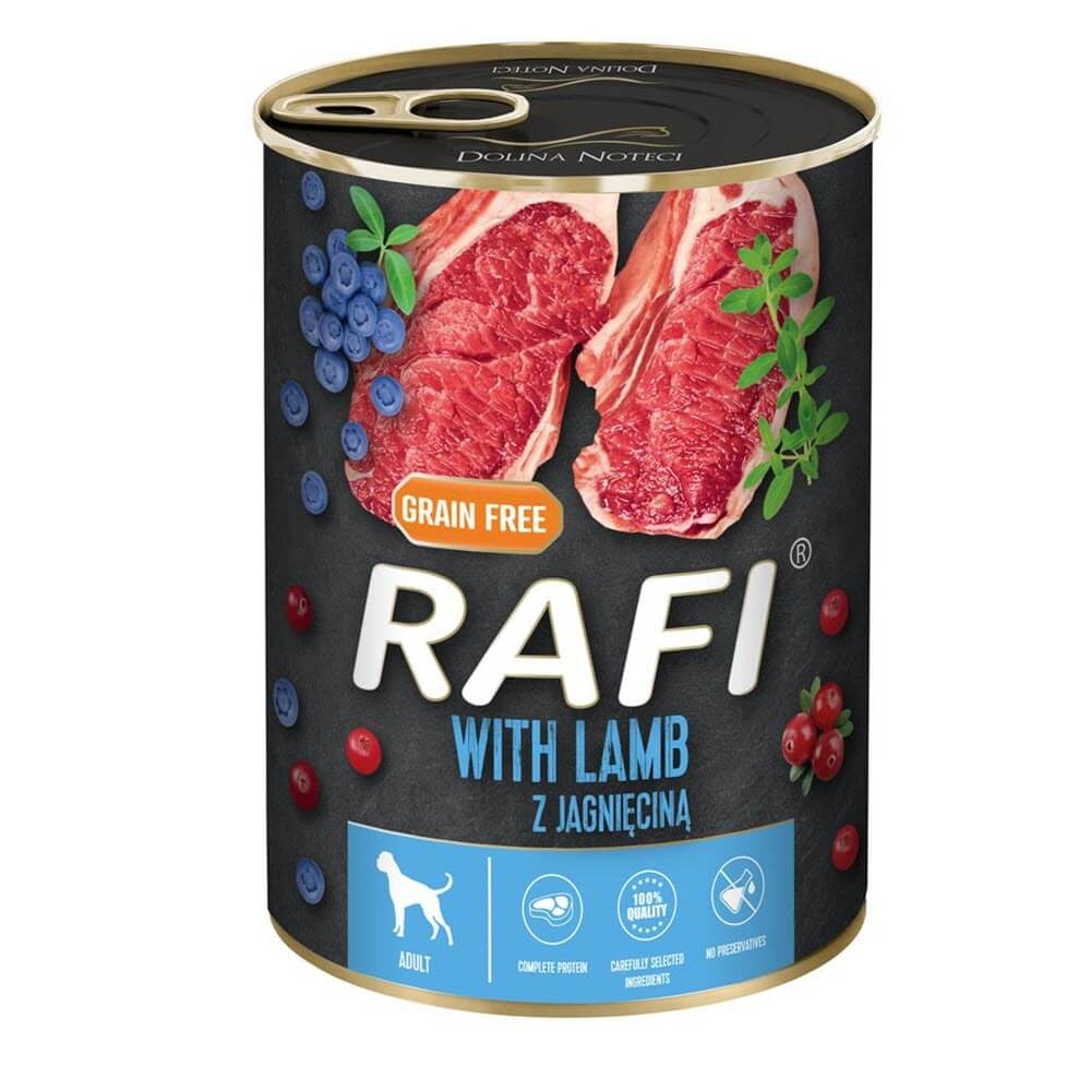 Rafi hunde vådfoder er 100% kornfrit. Lammekød er sunde proteiner med en naturlig kilde til methionin, isoleucin og cystin (nogle vigtige aminosyrer) som gavner og nære din voksne hund. En naturlig kilde til de sunde proteiner og B vitamin.
