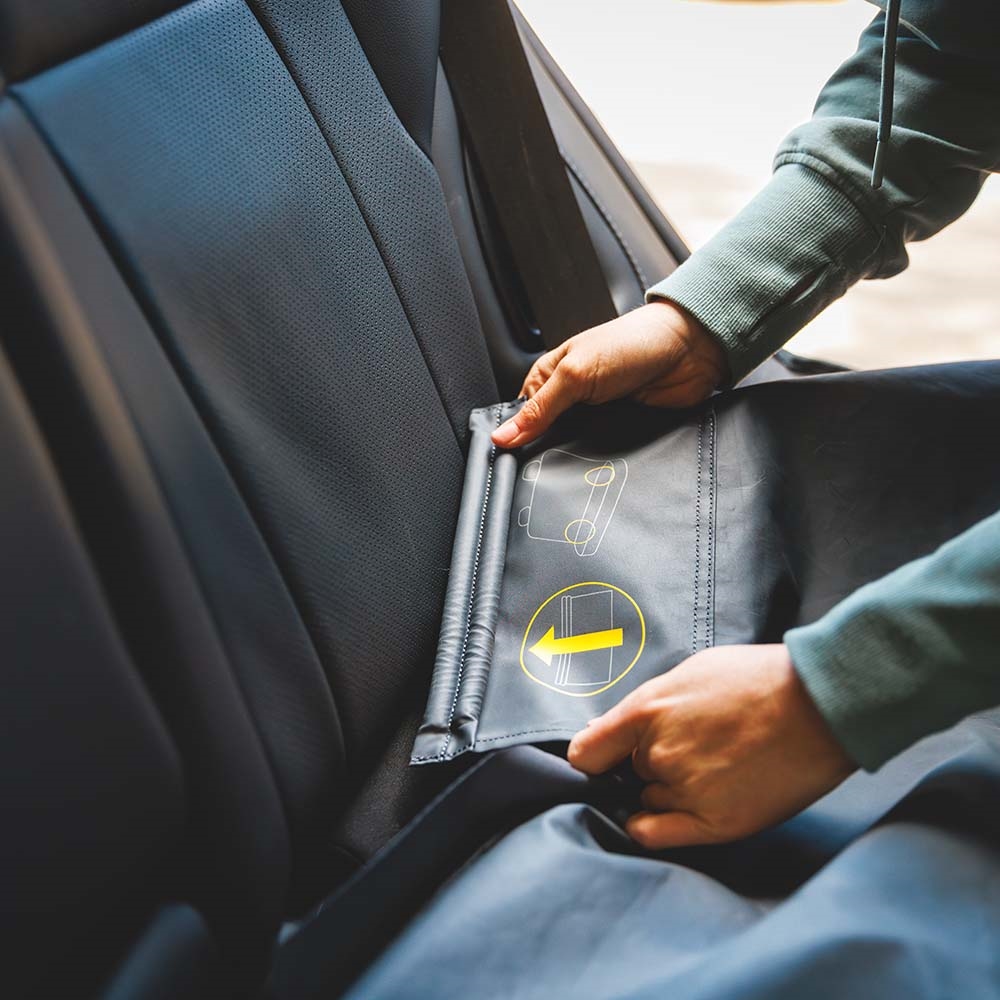 Smart vandtæt cover til beskyttelse af bilens bagsæde. Nemt at håndtere og rengøre.