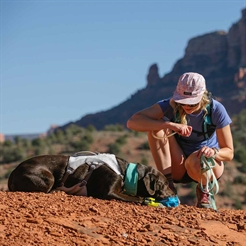 Ruffwear Swamp Cooler hundeselen er ikke bare en fremragende hundesele, det er også en sele, der kan køle din hund i sommervarmen. Du hælder blot køligt vand over selens mesh-materiale, og den vil suge vandet til sig.