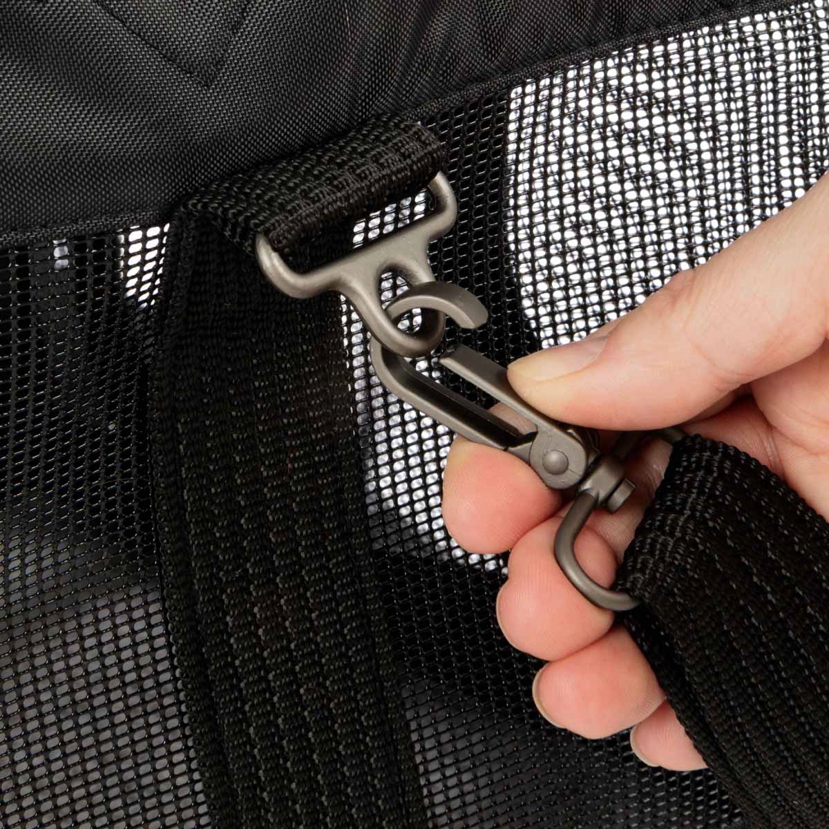 • Kan sættes fast i sikkerhedsselen på din bil