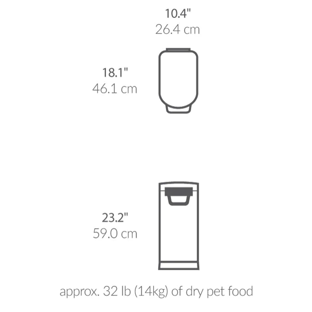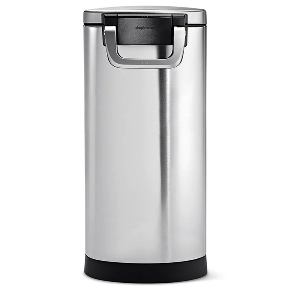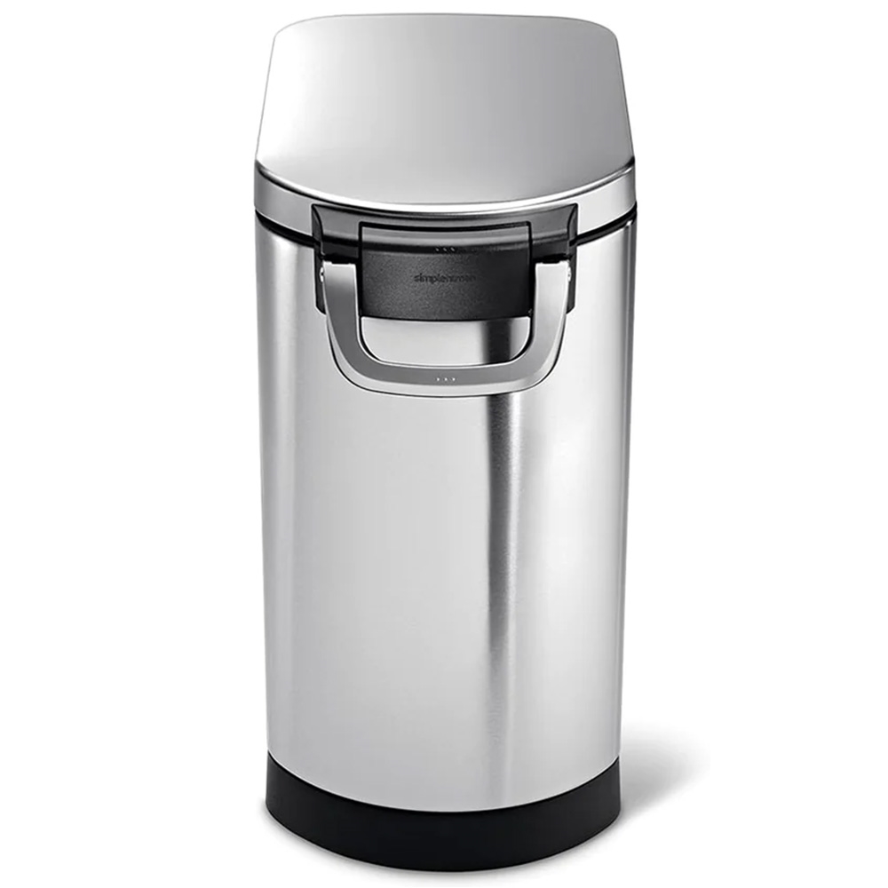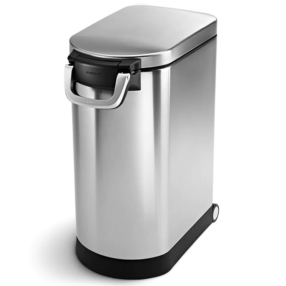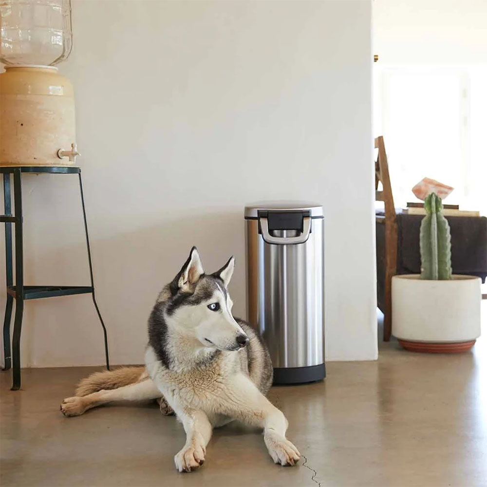 Denne foderspand fra simplehuman har et robust låsefast håndtag, der holder mad inde og kæledyr ude. En silikone pakning danner en lufttæt forsegling, så maden forbliver frisk. En vaske ægte smuk og stilfuld foderbeholder i børstet rustfrit stål.