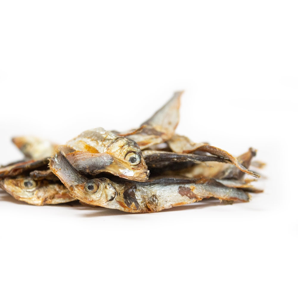 Naturlig tørrede brislinger i stor størrelse. Brislingerne er nænsomt tørret og er en perfekt snack til hunden der elsker fisk. Denne sunde tyggesnack har en god smag og din hund vil med garanti skynde sig at sætte tænderne i den. Hold altid øje når din hund får natursnack.