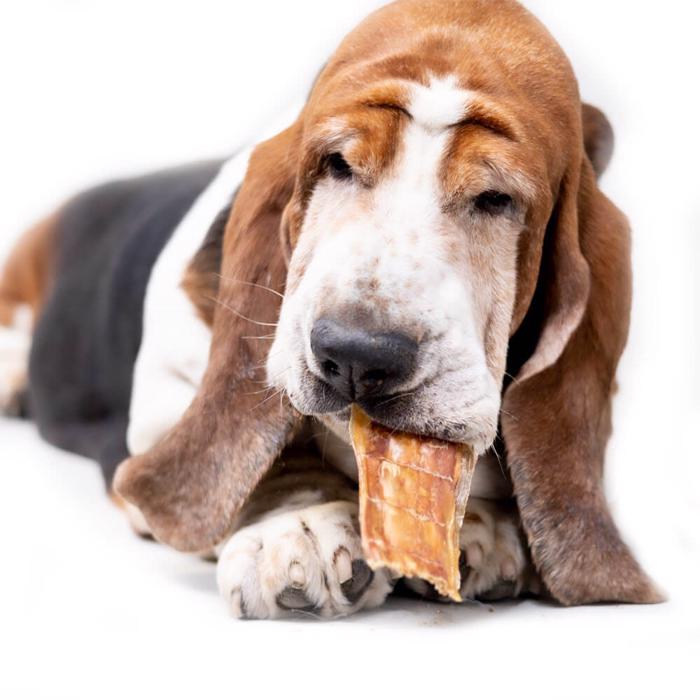 Tørrede valsede spiserør som er skåret igennem. En sej snack med lang tyggetid, alt efter hundetype. Denne hundesnack er med til at pleje tænder og tandkød.