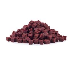 Lækre kødterninger til hunden. En perfekt sund godbid til forkælelse, træning og leg. Terningerne er tørret oksekød. Okse kød er ikke kun en solid og velsmagende kødtype, det er også fyldt med vigtige vitaminer og mineraler.