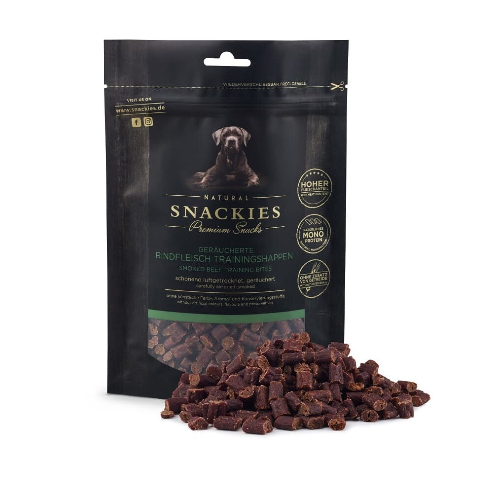 Snackies Premium Naturals Training Bites Med Røget Oksekød 80g