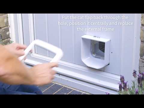 To-delt konstruktion for nem montering. Indgangspartiet er tætnet med en flot liste, som beskytter mod træk. Passer ind i døre op til 6 cm tykkelse uden tilbehør. Kan også monteres i glas fra 3mm til 6cm tykkelse. En glas monteringsadapter påkræves til alle glasinstallationer. For kæledyr uden mikrochip kan SureFlap halsbåndstegn bruges.