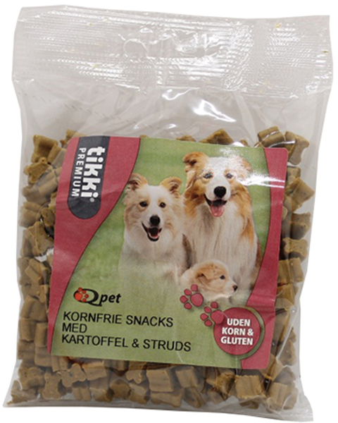 Tikki Premium med kartoffel & struds er en kornfri og glutenfri. De små godbidder er yderst velegnet til belønning under både træning og leg.
