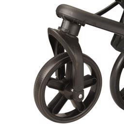 Vognen er designet med hårde foam drejehjul foran som måler 28 cm. Bagpå er der hårde foam hjul med affjedring. Disse måler 40 cm.