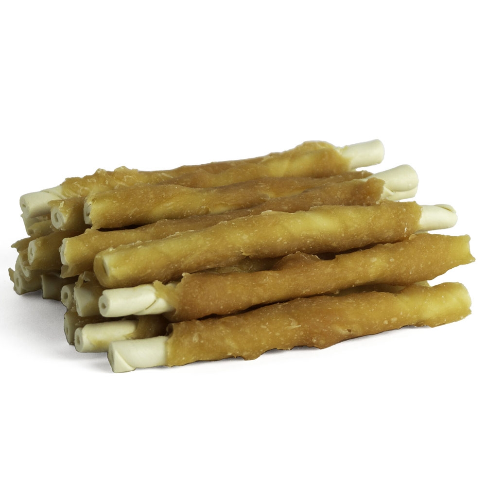 Lækre no-hide tyggepinde, lavet uden råhud. Svøbt i dejlig kyllingebrystfilet. 1 kilo i posen.