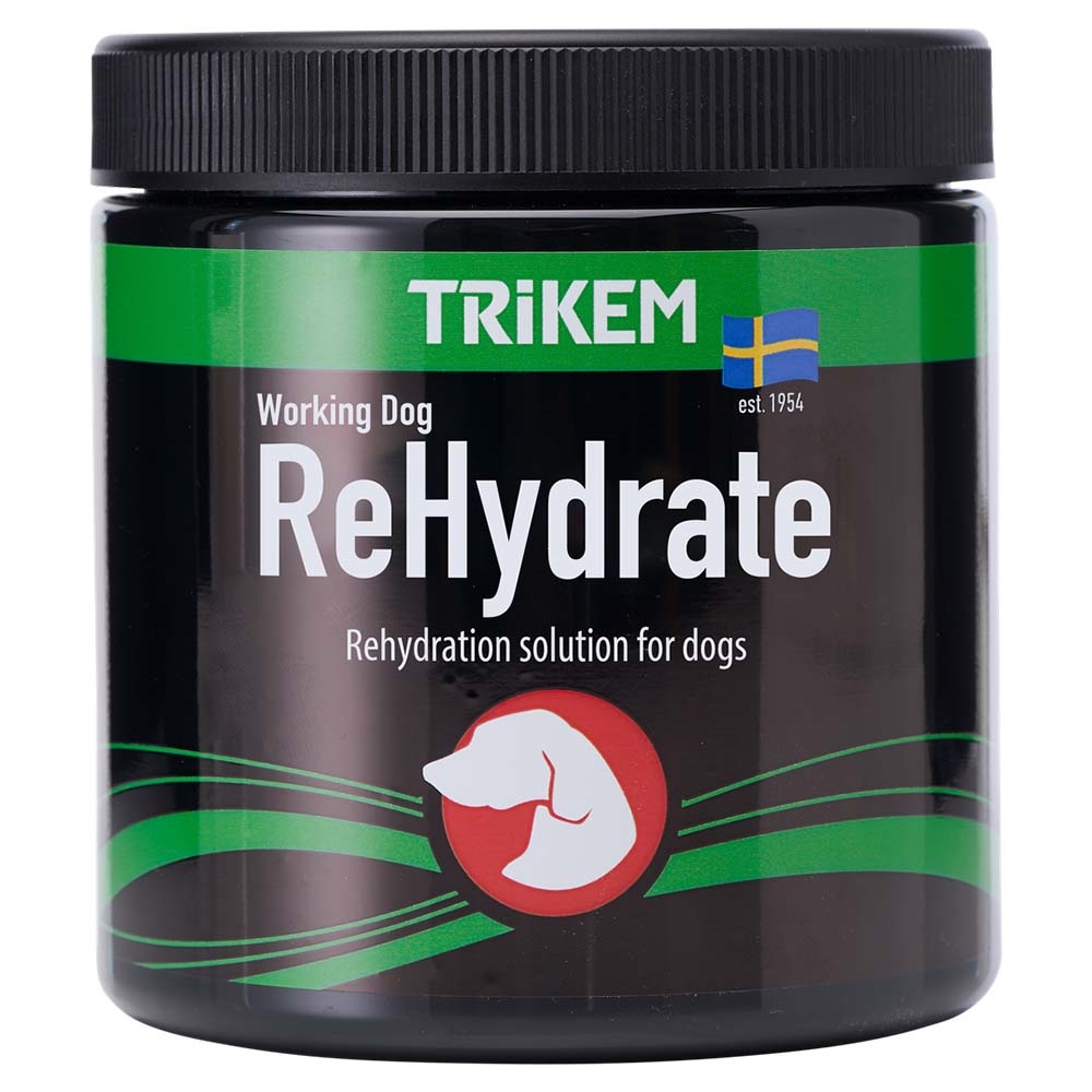 Trikem Working Dog ReHydrate gives til hunde for effektiv restitution efter dehydrering. Hunde, der motionerer eller udfører andre aktiviteter i varme temperaturer, mister væske ved at gispe/puste.