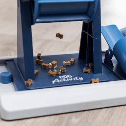 Med dette aktivitetsspil får du en træt og velstimuleret hund, da hunden får lov til at arbejde for føden imens den bliver udfordret mentalt. Spillet indeholder 2 dele hvilket gør at hunden skal finde flere løsninger for at få fat på godbidderne. Den ene del består af en trumle som skal drejes, mens den anden del skal vippes.