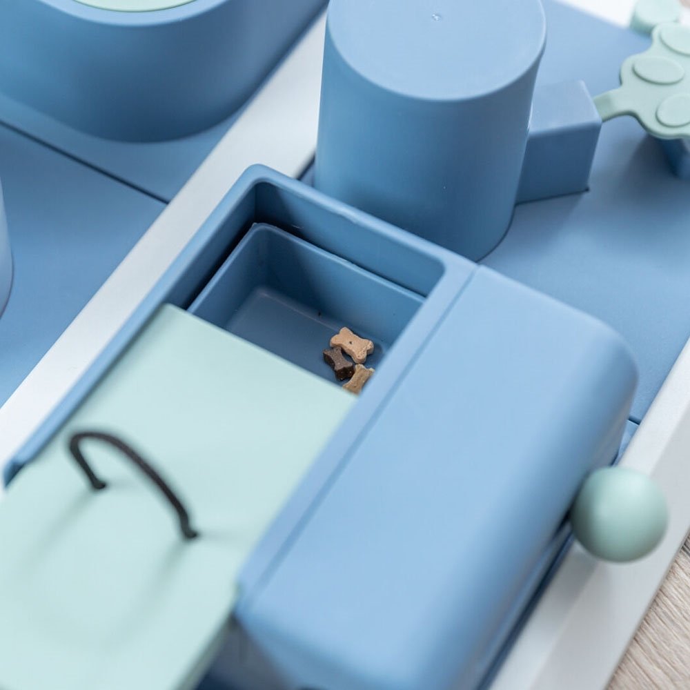 Sjov aktivitetsspil til din hund. Lad hunden finde løsningen til at få fat i godbidderne. Mentalt og udfordrende spil.