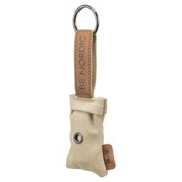 Denne sandfarvede poseholder er designet i et smart kanvaslook. Der er en ringkarabinhage i stroppen, så du kan fastgøre den hvor du ønsker den.