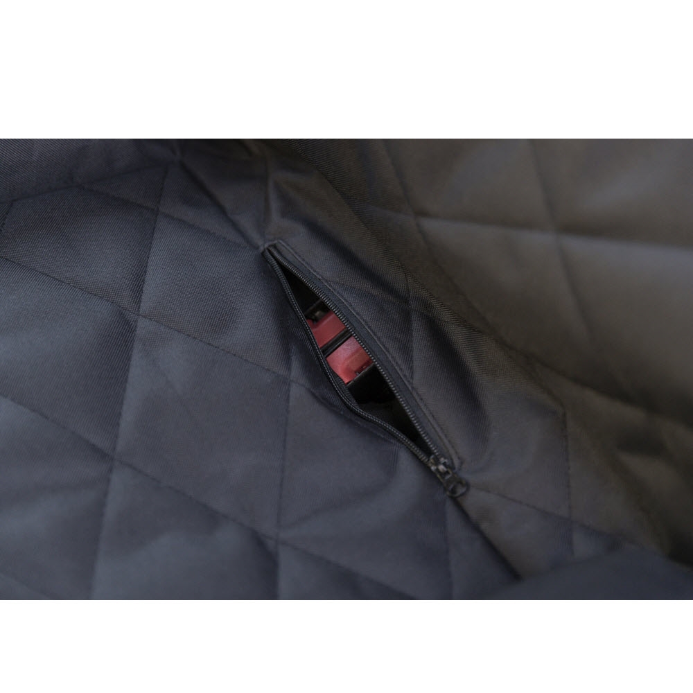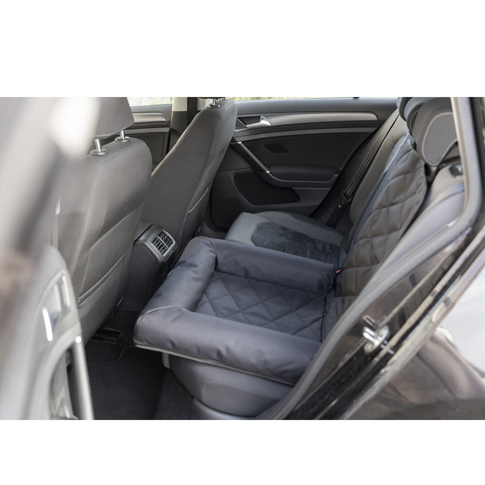 Denne smarte bilsædehynde er beregnet til bagsædet, hvor den dækker et af dine sæder. En seleåbning i sædet, gør det muligt at fastgøre hunde i bilen. Sikkerhedsseler skal tilkøbes.