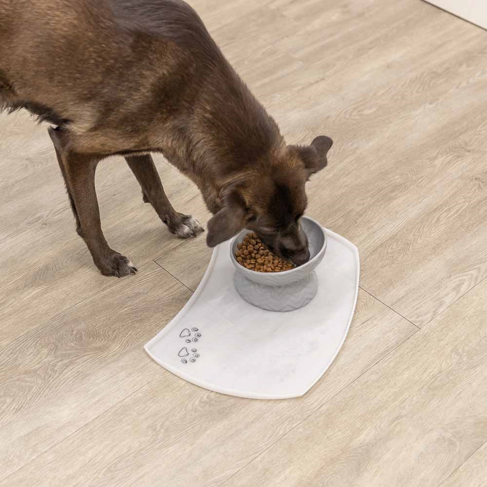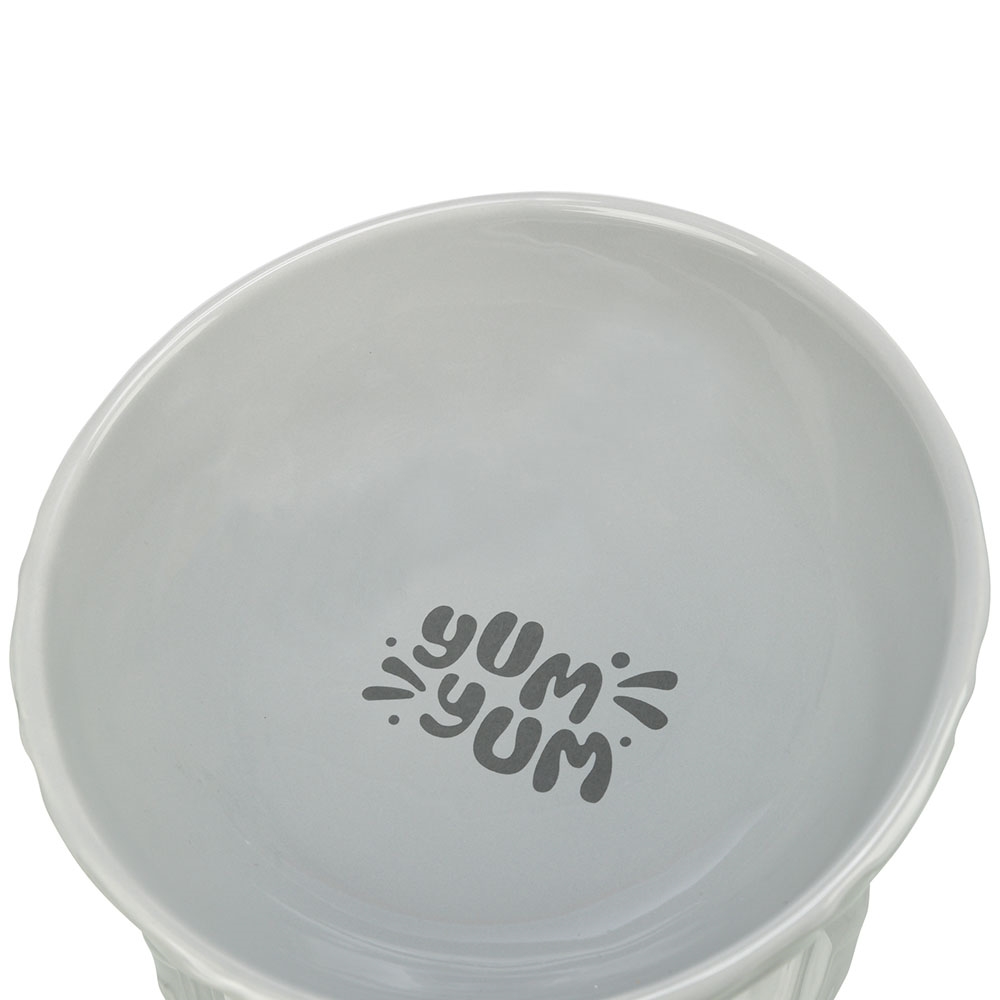 Hævet keramisk foderskål i grå, der giver din hund en mere komfortabel spisestilling.