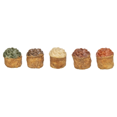 Du får 1 stk. i assorteret farve. Hver cupcake vejer ca. 25 gram.