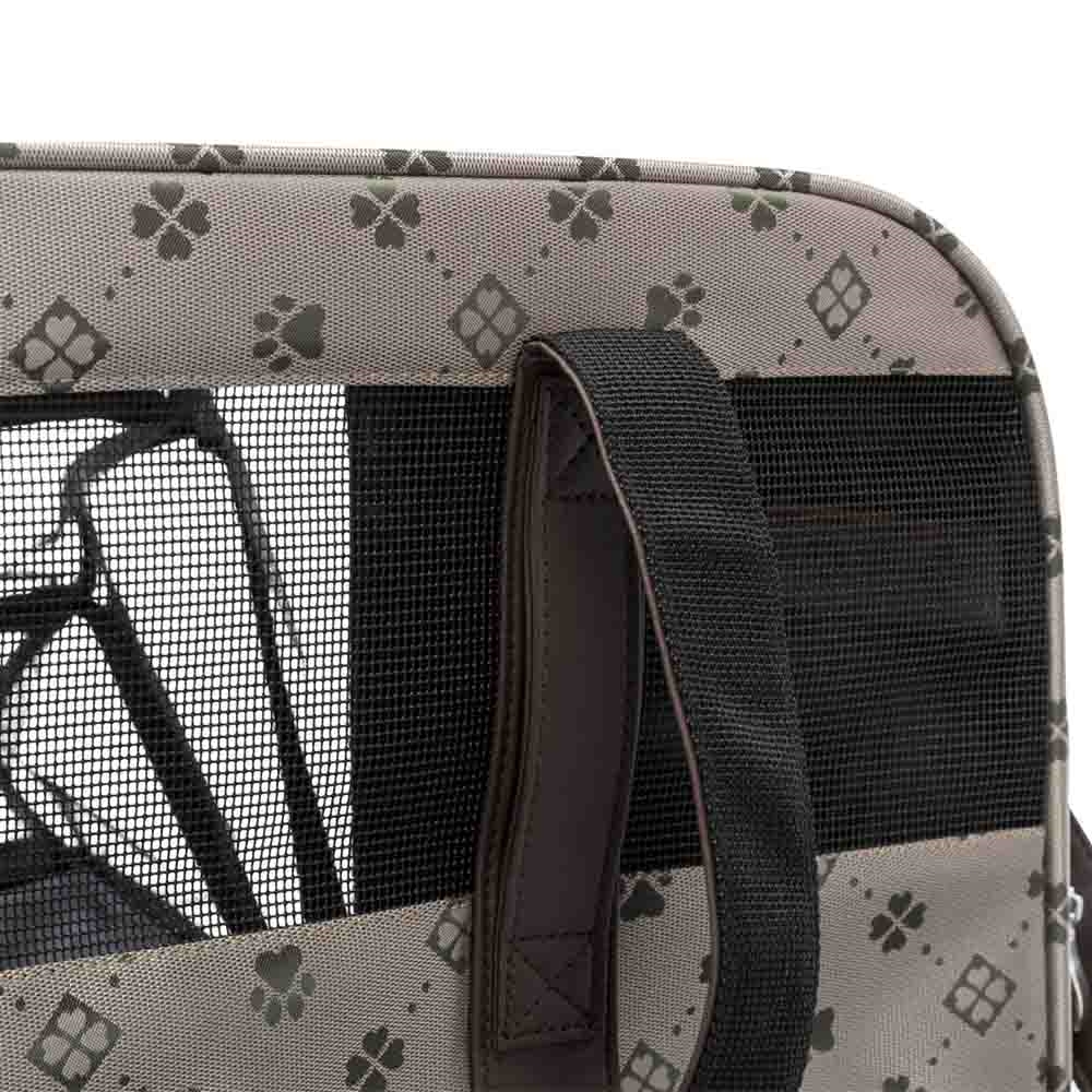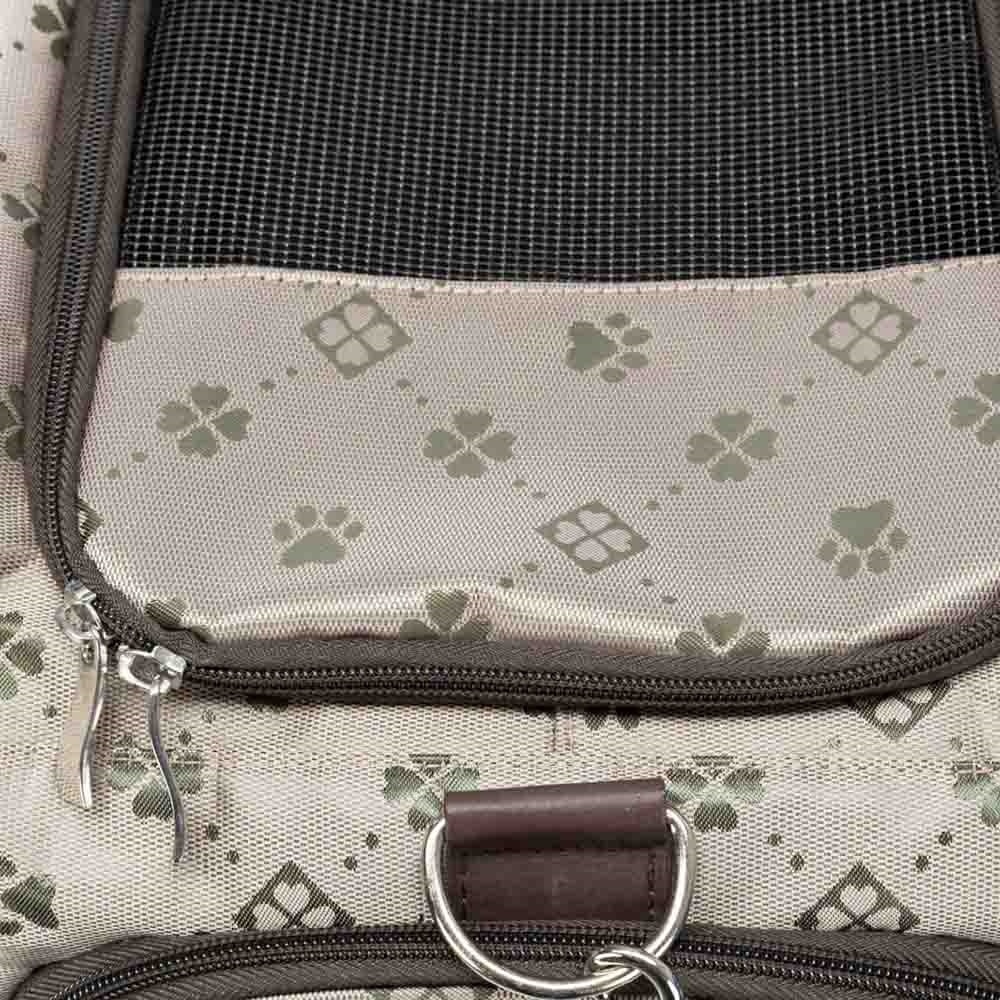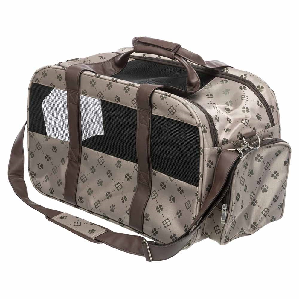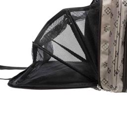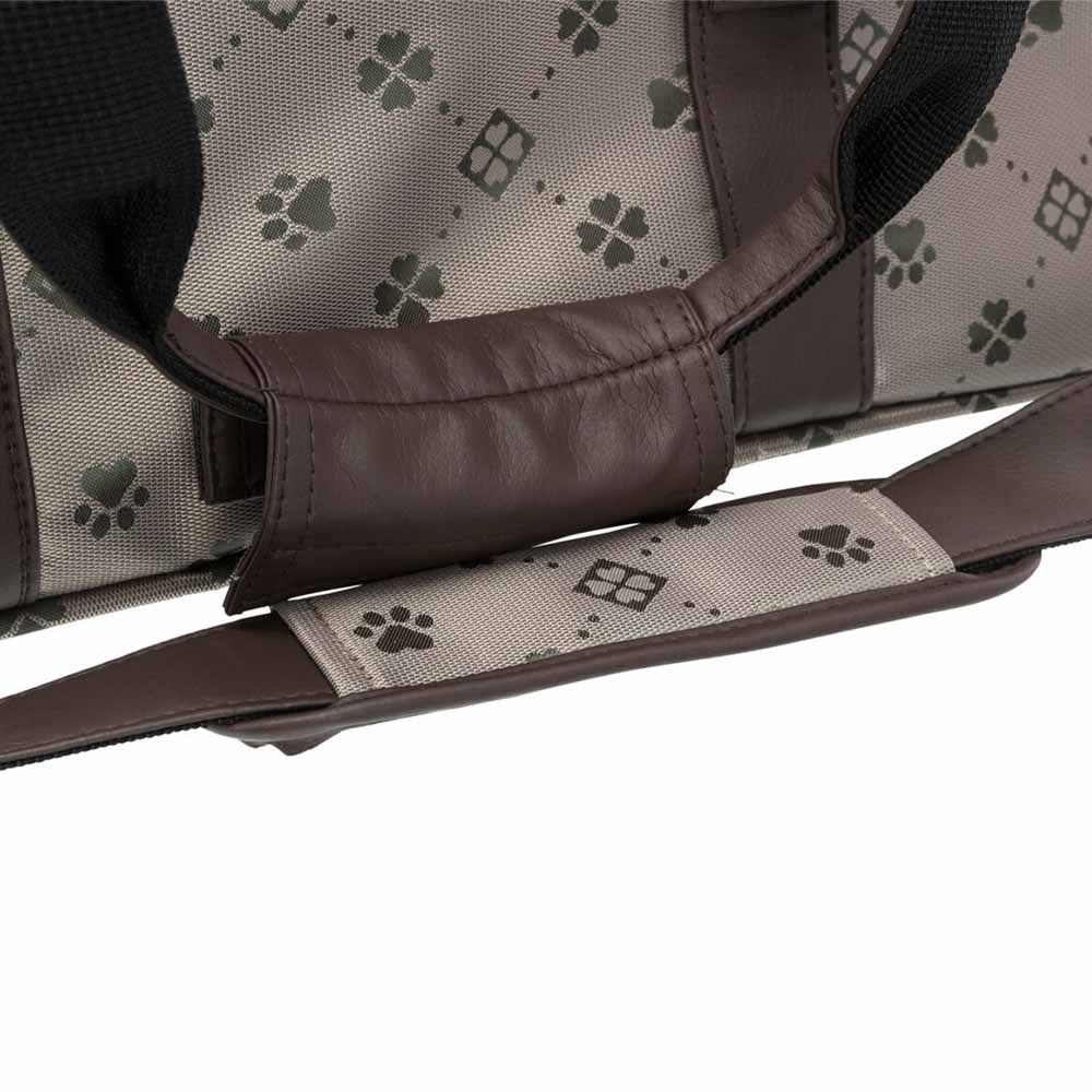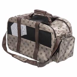 Mød vores smarte hunde transport taske med bære og skulder stropper. Tasken har et Jacquard polyesterbetræk.