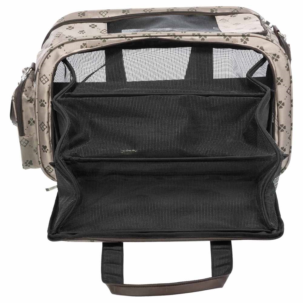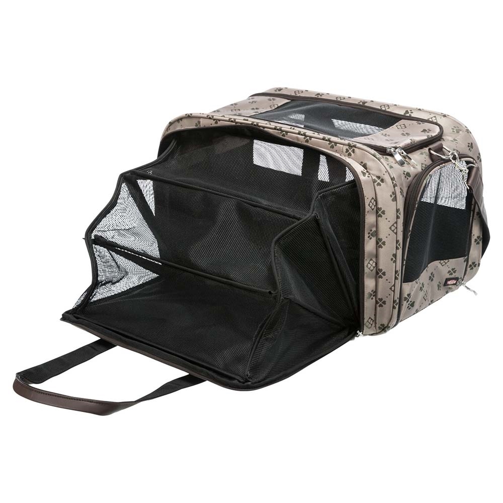 Hundetasken kan åbnes i toppen og foran.