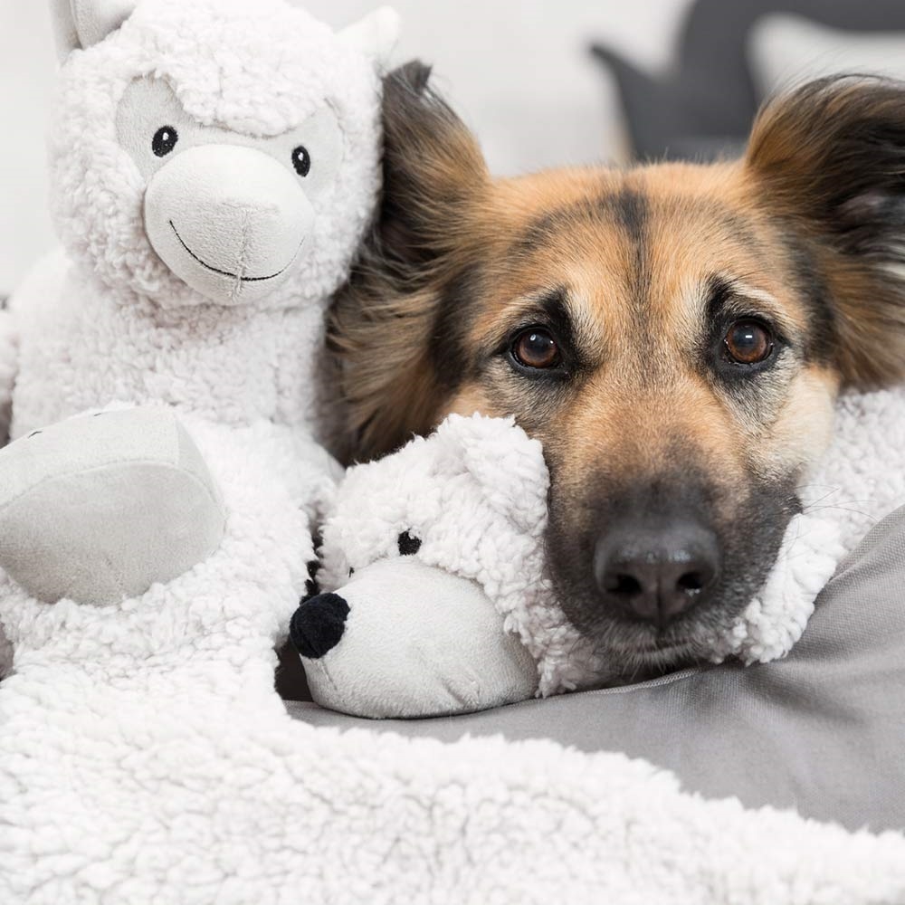 Denne søde bløde nuttede alpaka vil gerne flytte hjem til netop din hund. Den måler ca. 26 cm.