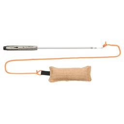 Få sat gang i hundens jagtinstinkter med denne sjove lokke stang, som har en dummy i den anden ende. Lokke stangen består af en udtageligelig teleskopstang, med en såkaldt 'jute dummy', som er en dummy som er syet sammen. Denne dummy har en let rug og slidstærk overflade, og er fyldt med et middelhårdt og fleksibelt materiale.
