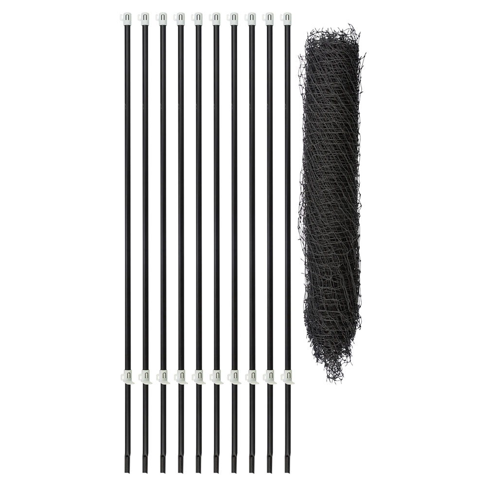 • 10 stænger af 1 m længde, heraf er der en 20 cm spids der skal i jorden, til sikkert greb