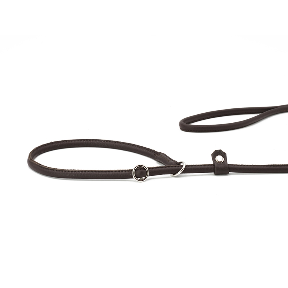 Håndlavet udstillings line og halsbånd i et. Som du kan se er der stop på linen og en smart læderstop, som gør at det hele bliver hvor du sætter det. Sættet er håndlavet og udført i meget blødt og lækkert rundsyet nappelæder. Indvendigt i linen er der indsyet en nylonline sådan at formen holdes og holdbarheden bevares.