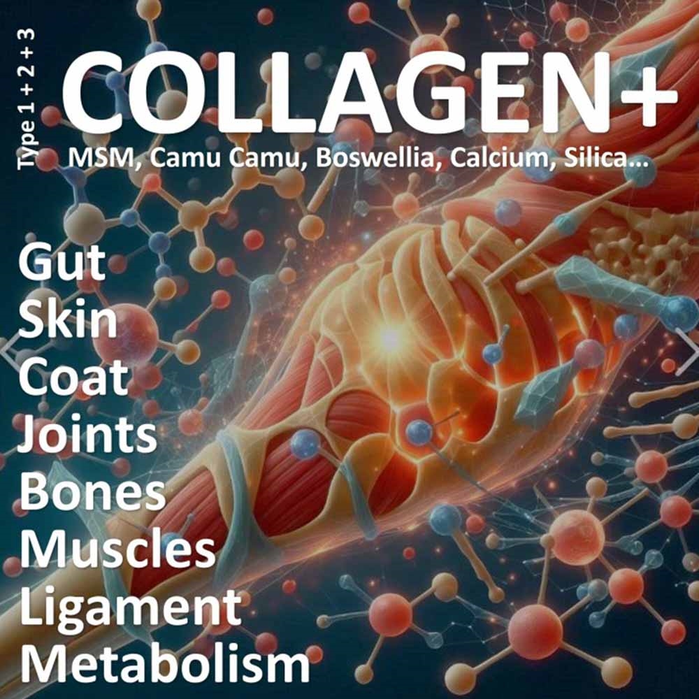 Kollagen indeholder de byggesten, hunden har brug for til vedligeholdelse af led og ledbånd. Kollagen deltager i nydannelsen af væv omkring leddet, som eksempelvis sener, muskel vedhæftninger og ledbånd. Kollagen indgår i nydannelsen af ledbrusk