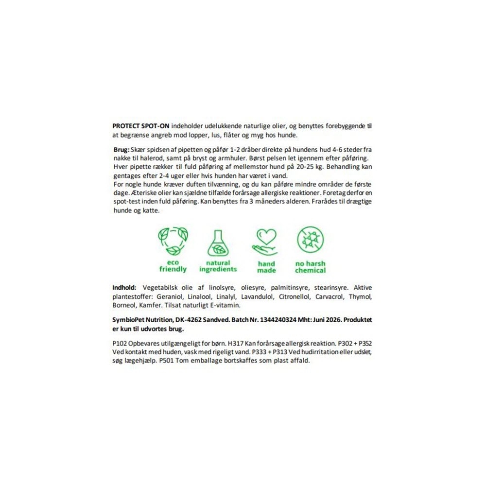 Protect Spot On indeholder udelukkende naturlige olier, og benyttes forebyggende til at begrænse angreb fra utøj hos hunde.