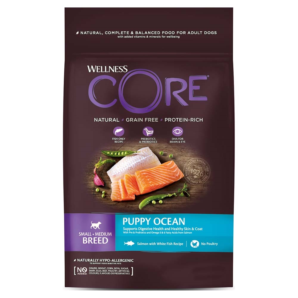 Dette kvalitets hvalpefoder fra Wellness Core er velegnet til hvalpe af små og mellem racer. Hvalpefoderet er designet til at understøtte fordøjelses systemet, samt en sund hud og skinnende pels med omega-3 og 6-fedtsyrer fra laks.