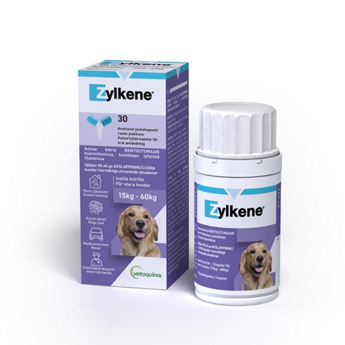 Zylkene er et naturligt beroligende produkt til hunden i perioder hvor hunden bliver utryg eller bange. Zylkene er ikke receptpligtigt.